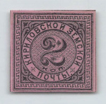 Российская Империя. Земская почта. Кирилловский уезд. 2 коп. № 3 (Соловьев 25 $) Чистая. Клей, наклейка