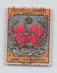 Российская Империя. Земская почта.Тотьма. Вологодская губ. 3 коп. синяя, красн., ж-коричн. и золотая № 1(Соловьев 40 $) Земское гашение АВГ 1895