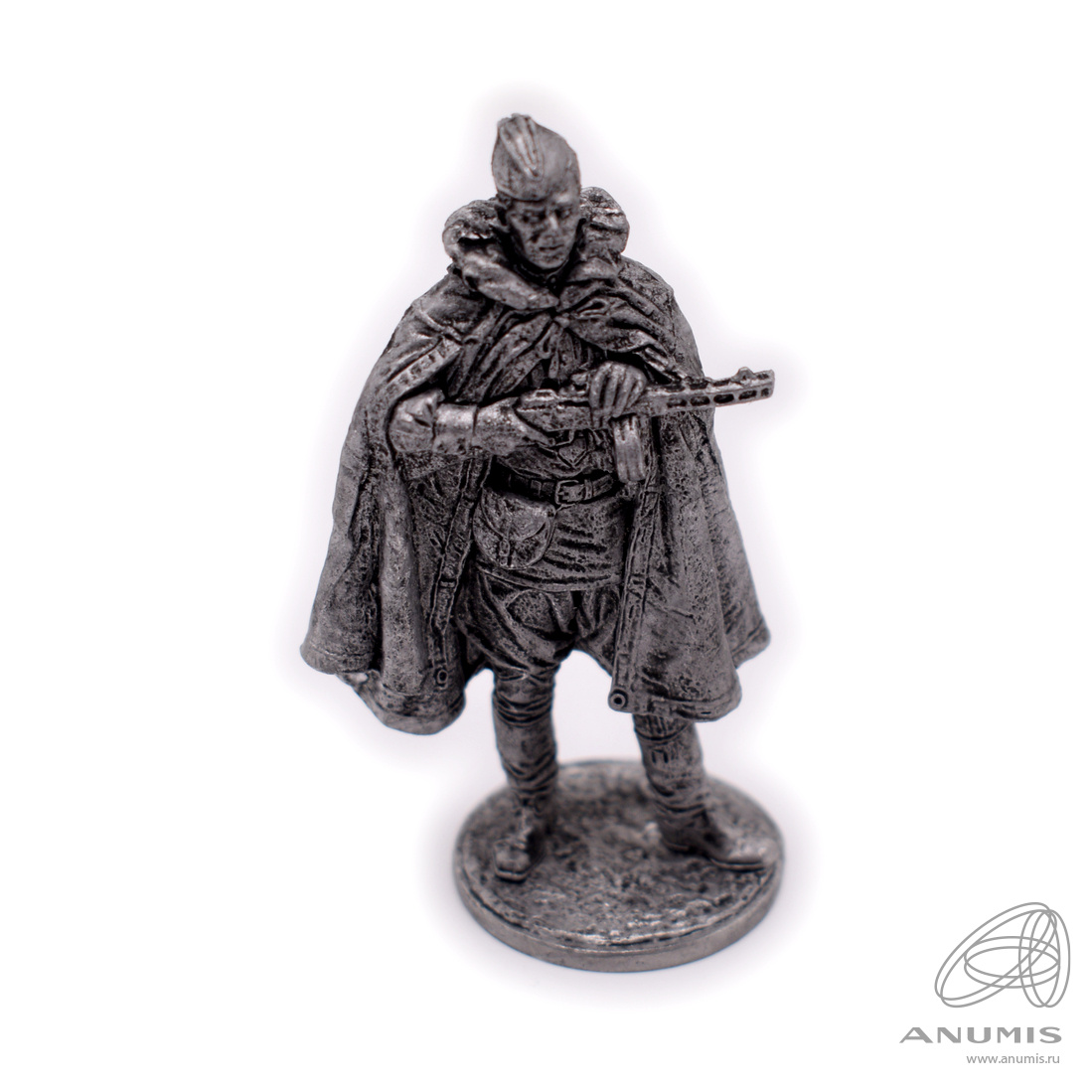 Статуэтка Красноармеец в плаще-палатке с автоматом ППШ. Олово. Размер 3,5×6,5 см. Красная армия СССР