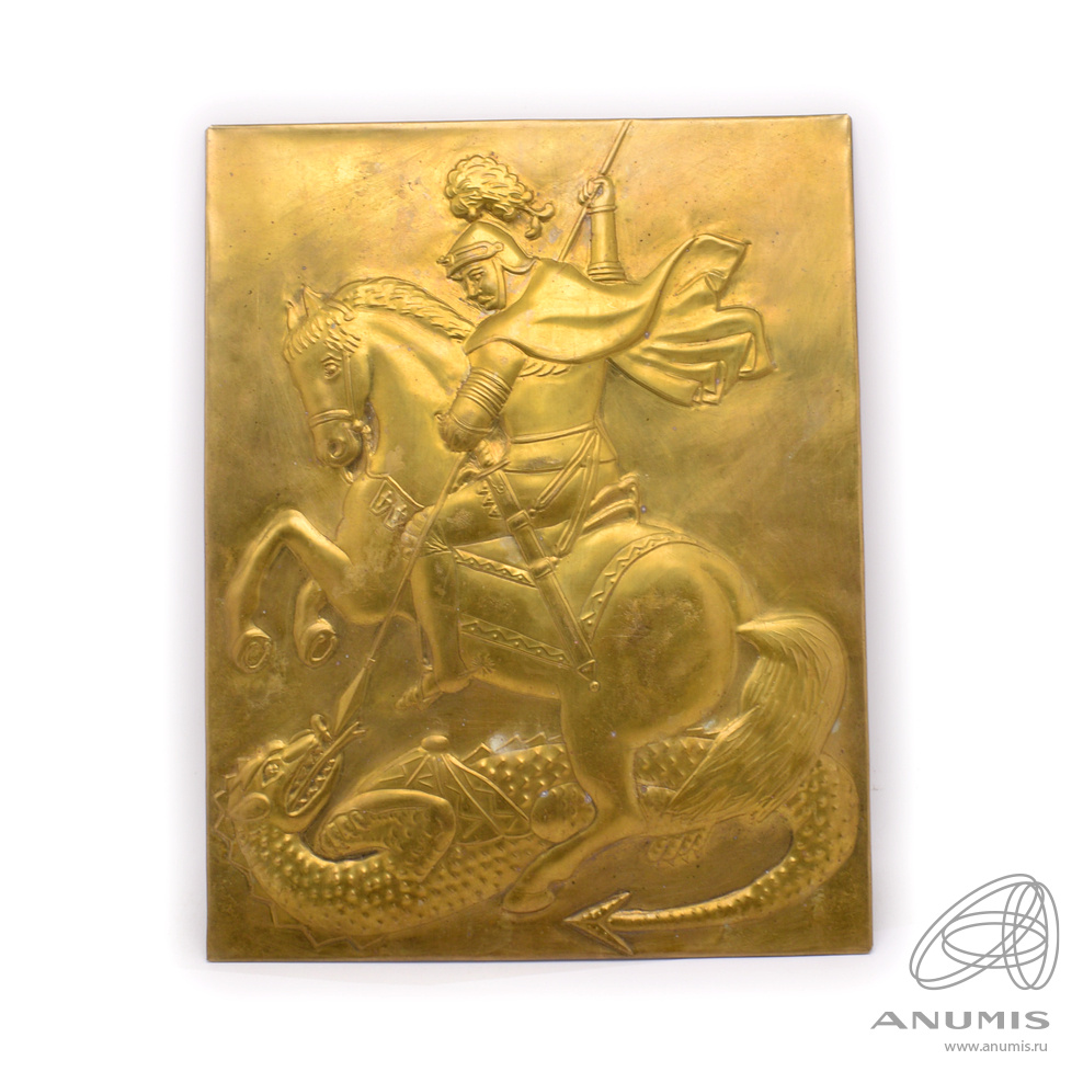 Панно «Георгий Победоносец». Латунь. Размер 24×31 см