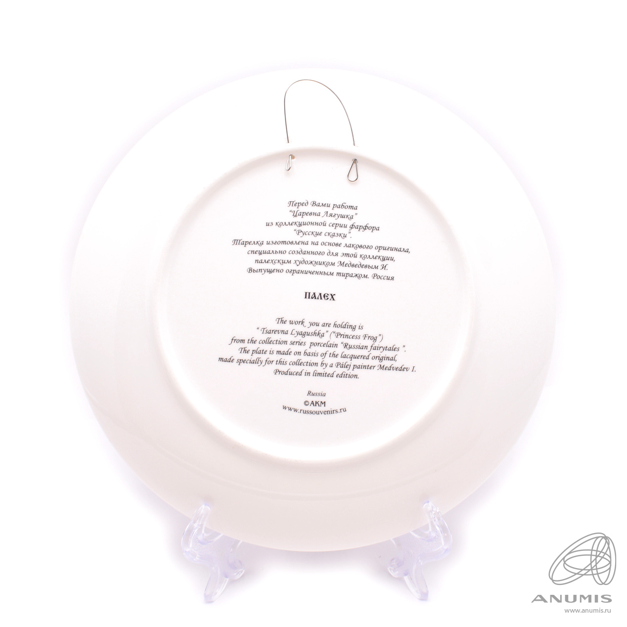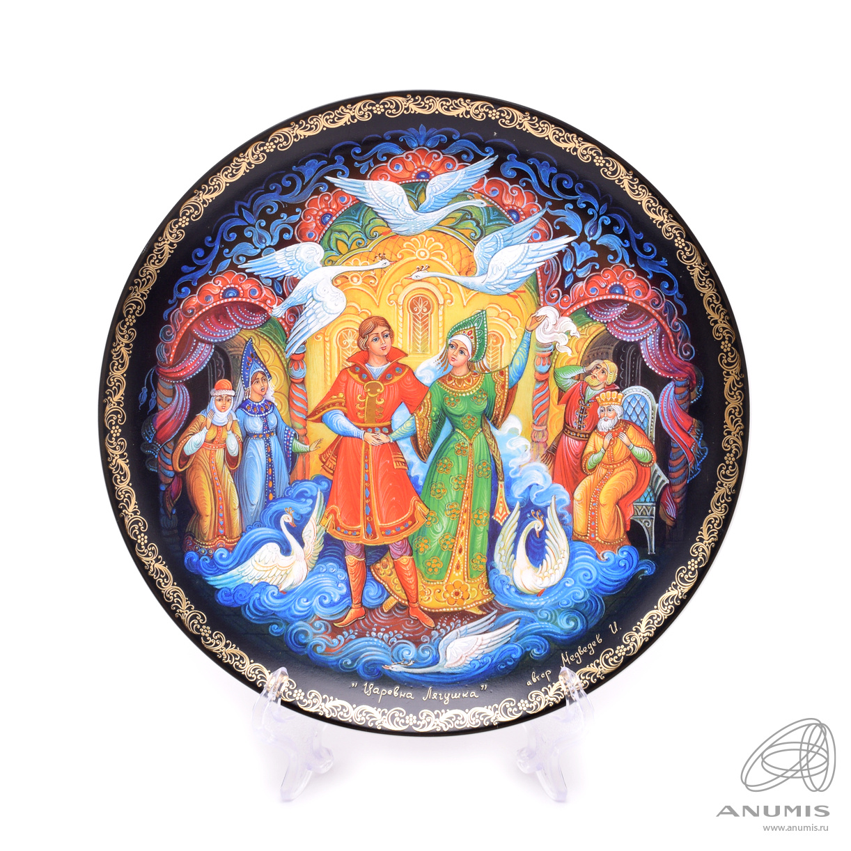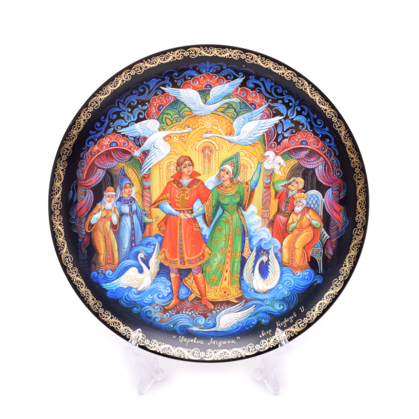 Тарелка «Царевна Лягушка» из коллекционной серии фарфора «Русские сказки». Тарелка изготовлена на основе лакового оригинала, специально созданного для этой коллекции, палехским художником Медведевым И. Выпущено ограниченным тиражом. ⌀ 20 см