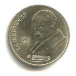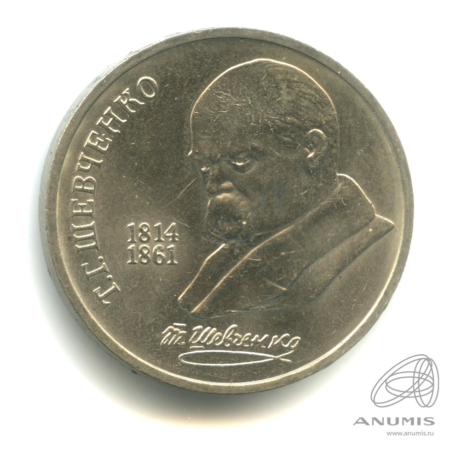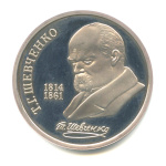 Юбилейная монета: 1 рубль 1989 года «175 лет со дня рождения поэта Т.Г. Шевченко». Юбилейные 1 рубль 1965 — 1991 гг. Союз Советских Социалистических Республик: СССР поздний (1961 — 1991). Медь-никель, 13 г, ø 31 мм, Гурт: Надпись. Тираж: 3000000/300000 шт. Серия: Выдающиеся личности.