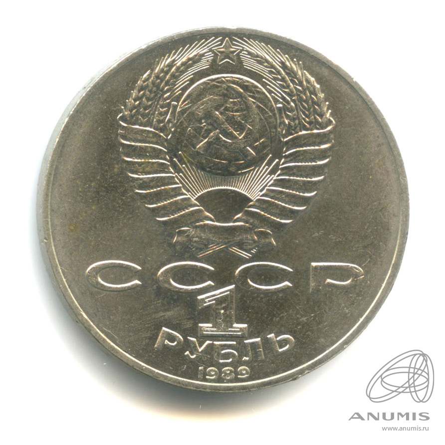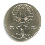 В верхней части изображение Государственного герба Союза Советских Социалистических Республик, под ним надписи: «СССР», в две строки — «1 РУБЛЬ» (слово «РУБЛЬ» расположено полукругом), обозначающая достоинство монеты, и «1989», обозначающая год чеканки. По окружности выступающий кант. Изображение и надписи рельефные.