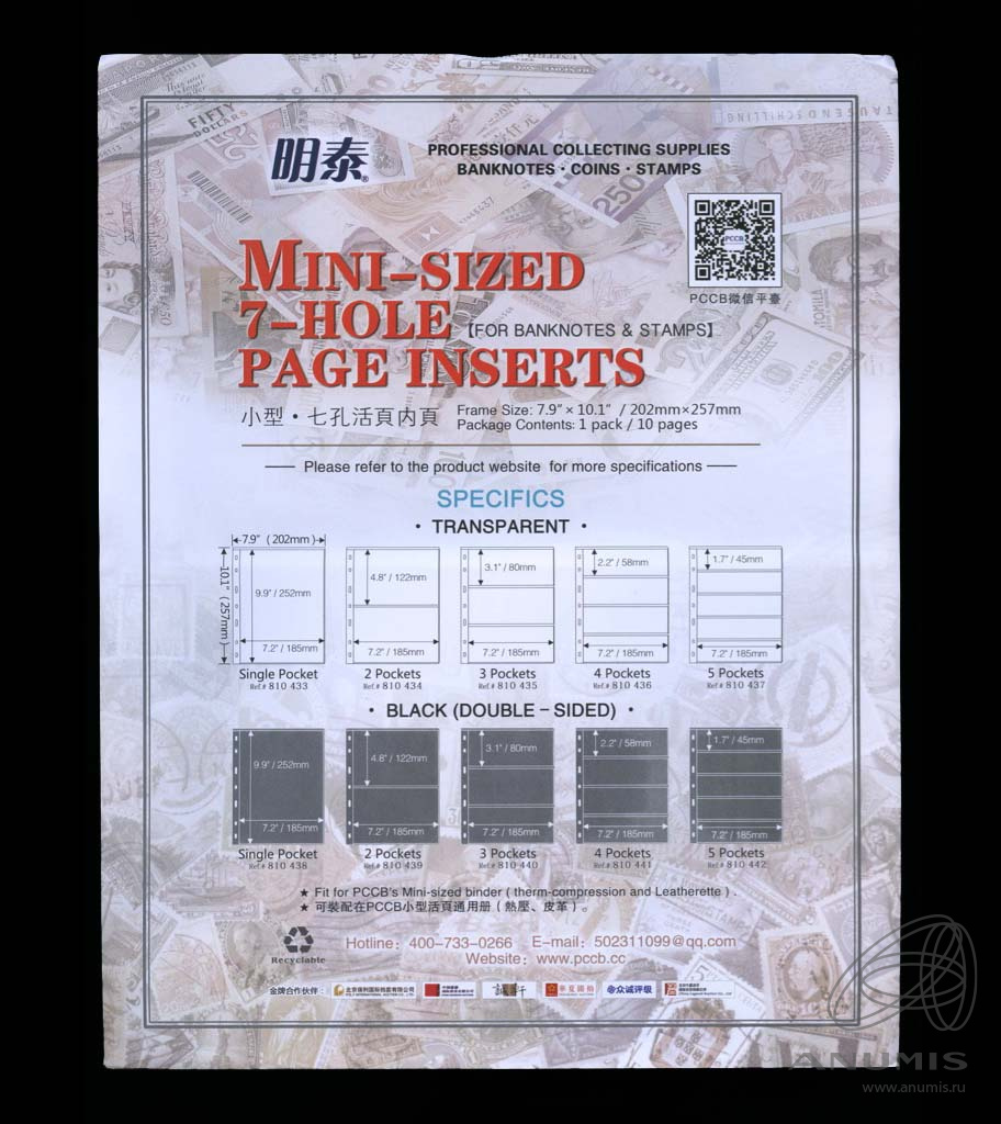 Листы MINGT в альбом OPTIMA на 2 банкноты упаковка 10 штук, материал ПЭТ. Размер 257×202 мм